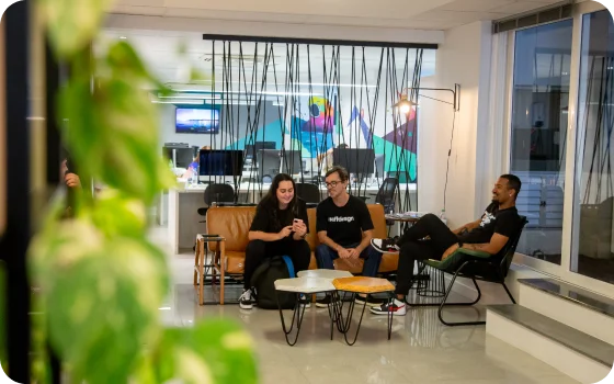 Nosso trabalho acontece online e é realizado por pessoas espalhadas pelo mundo. Podemos estar em casa, em um café, na universidade ou até na sede da empresa. Liberdade aqui é lei!