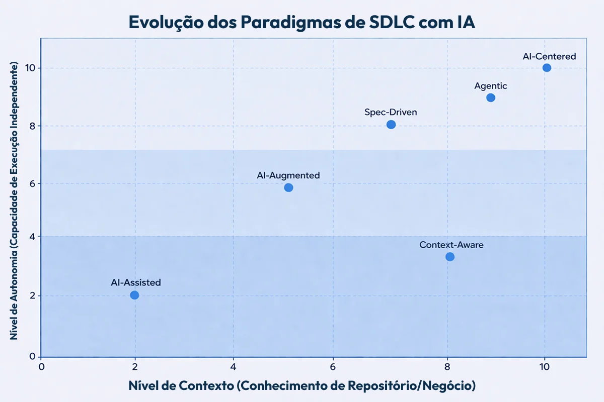 A sopa de letrinhas — AI-Augmented, AI Assisted, SDD, Skill, Agentic — pode parecer apenas hype, mas cada termo desses representa um nível diferente de maturidade, risco e retorno sobre o investimento.