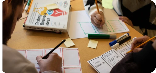 Criamos protótipos funcionais rapidamente com apoio de ferramentas de inteligência artificial. Com os protótipos gerados você materializa suas ideias, conduz testes com usuários e evolui a solução rapidamente antes de partir para a construção.